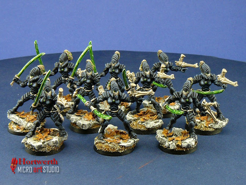 I like the dark colour of the eldar. They unusual armywide sceme is brilliant.